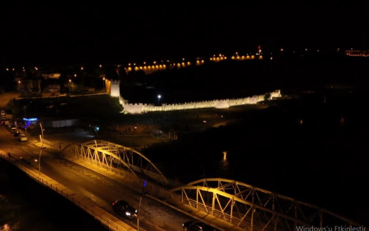 Tarihi kale, ışıklandırma ile yeni bir görünüme kavuşurken, gece görünümü de çevreye ayrı bir güzellik kattı.