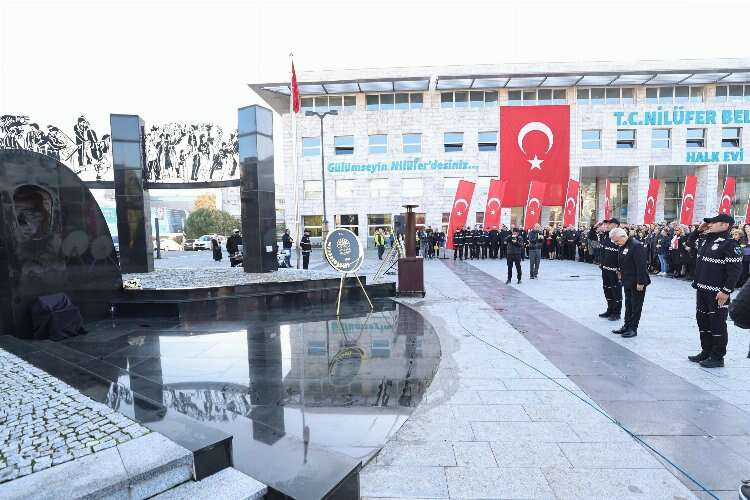 Nilüfer Belediyesi Halk Evi önündeki Nilüfer Cumhuriyet Meydanı’nda ve Alaaddinbey Hizmet Binası önünde düzenlenen törenlerde bütün çalışanlar katıldı.