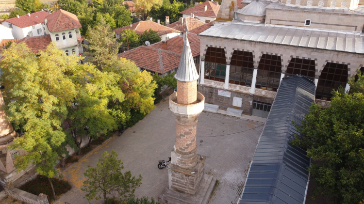Yozgat’ın Çandır ilçesinde asırlardır ayakta kalan tarihi Şahruh Bey Mescidi’ne ait tek minare dron ile görüntülendi.