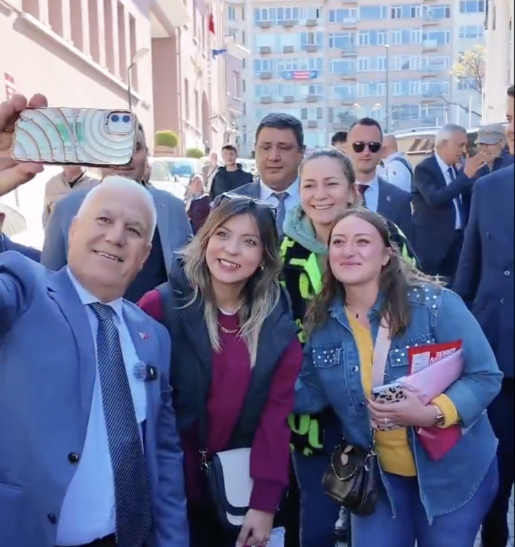 Başkan Bozbey, yolda karşılaştığı vatandaşlar tarafından yoğun ilgi görürken, onların fotoğraf isteklerini kırmadı ve herkese bayrak hediye etti.