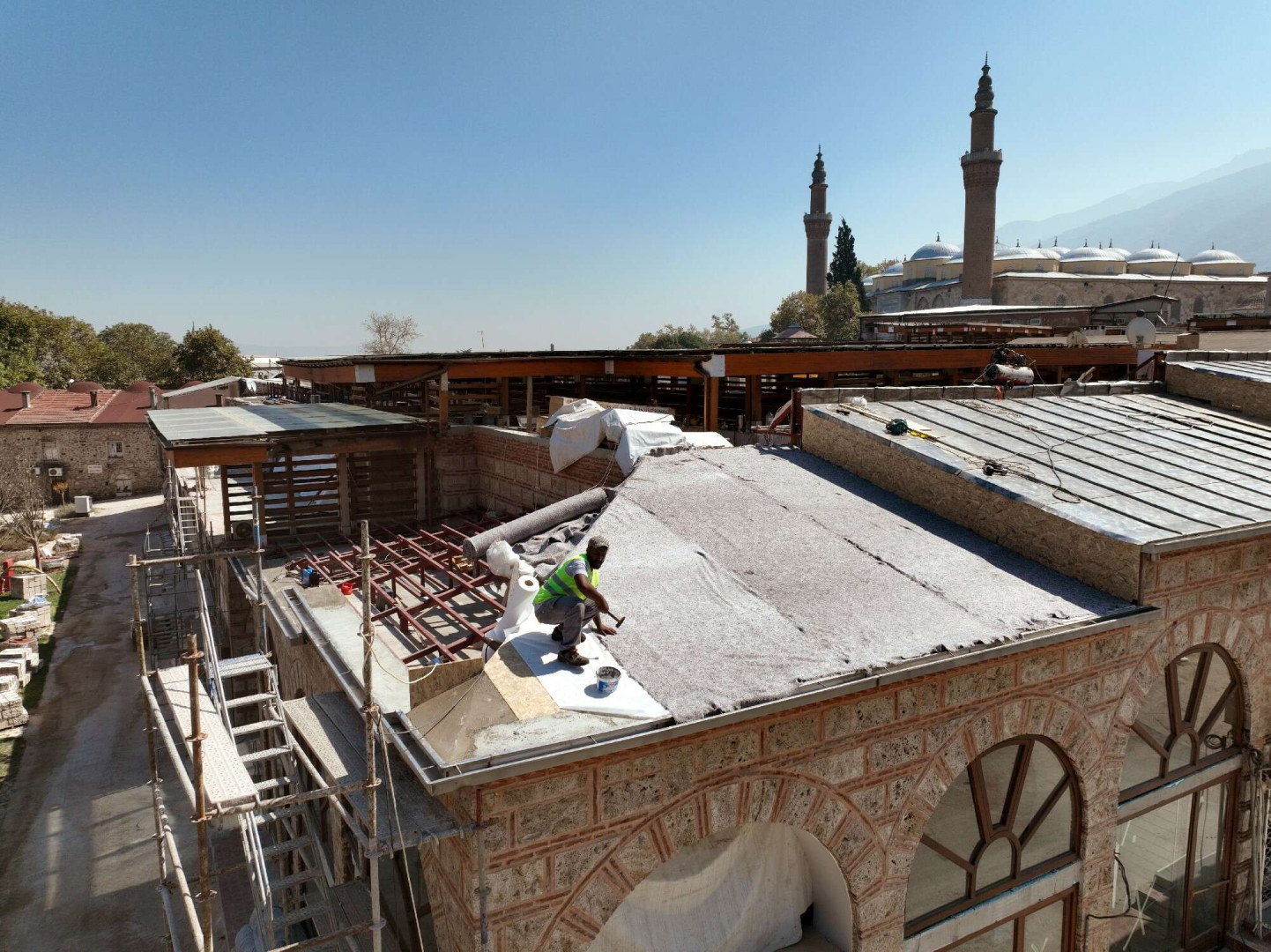 Bursa’nın kalbi olan Tarihi Çarşı ve Hanlar Bölgesi’nde 38 binayı yıkıp yılların hayalini gerçekleştiren, restorasyonla Sağrıcı Sungur Mescidini gün yüzüne çıkaran Büyükşehir Belediyesi, artık daha görünür hale gelen tarihi hanlarda da restorasyon çalışmalarını hızla sürdürüyor. Tarihi Bakırcılar Çarşı’nda başlatılan çalışma çerçevesinde, tarihi yapı cepheden çatıya kadar özgün kimliğine kavuşuyor.