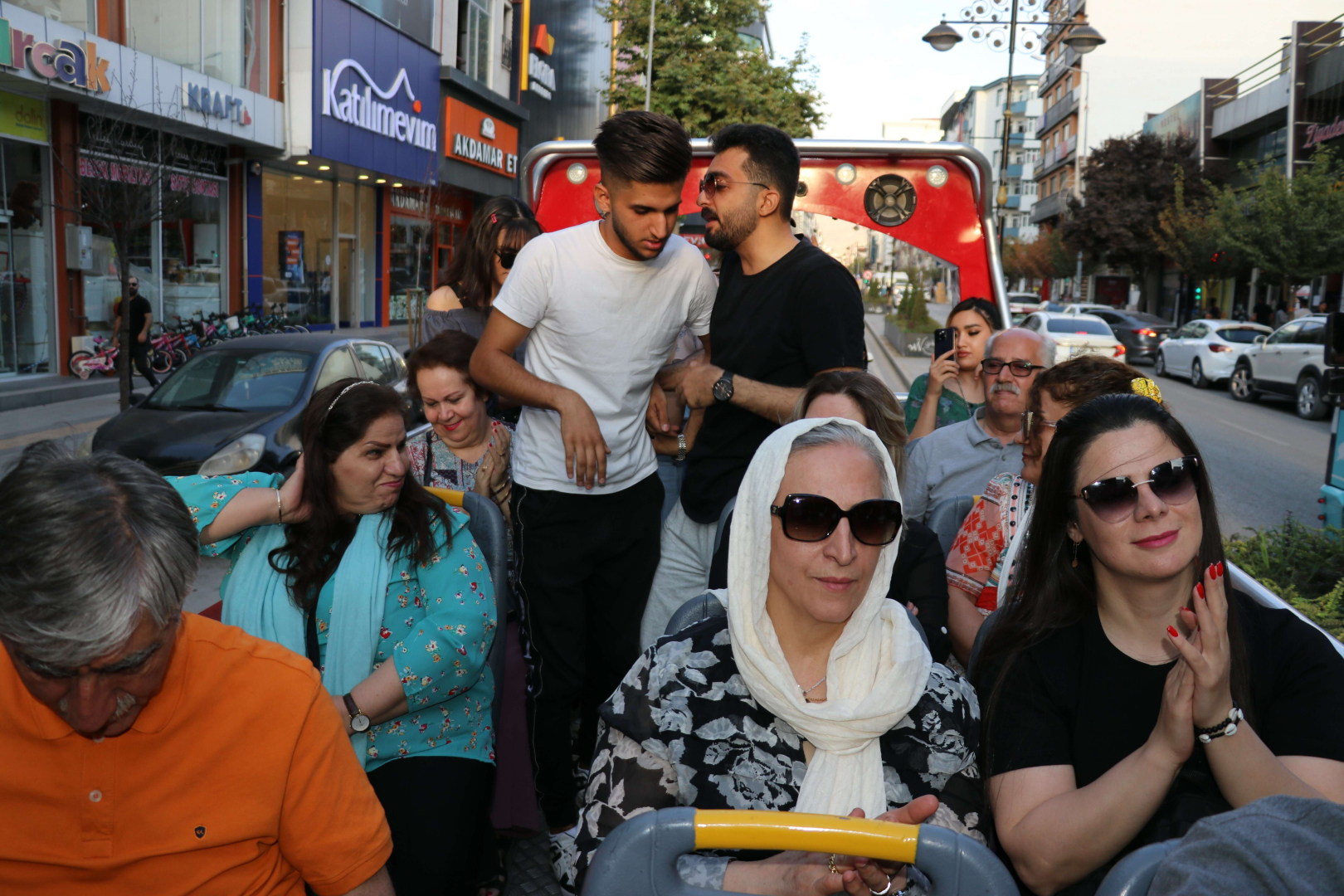 İranlı turistlere üstü açık minibüsle şehir turu