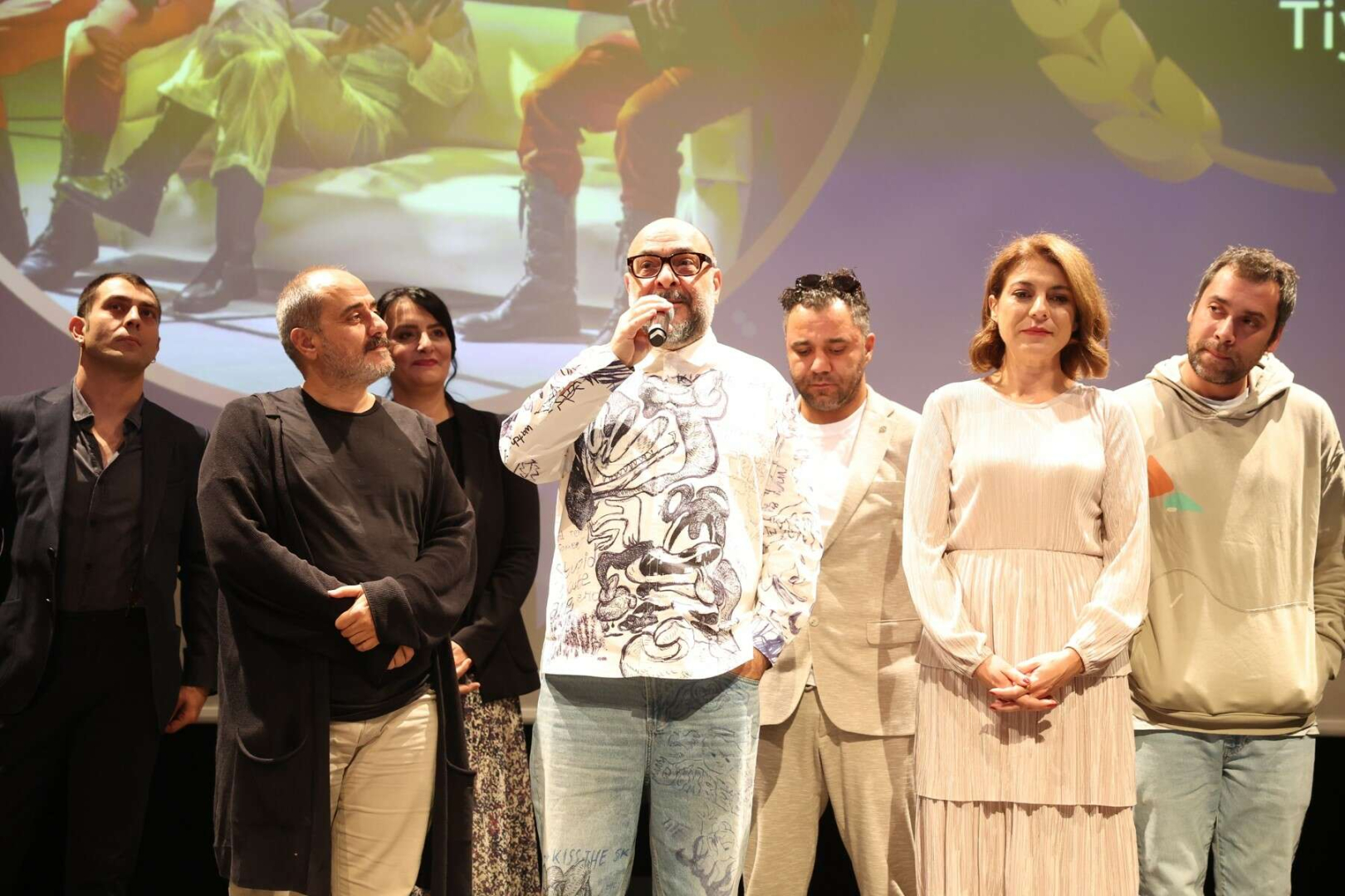 Ödülü NKT Genel Sanat Yönetmeni Murat Daltaban, oyuncularla birlikte aldı.