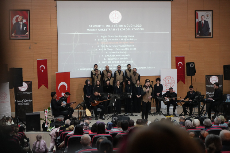 Bayburt İl Milli Eğitim Müdürlüğü tarafından düzenlenen konserde, kentte farklı kademelerde ve okullarda görev yapan öğretmenlerden oluşan Maarif Orkestrası ve Korosu sahne aldı.