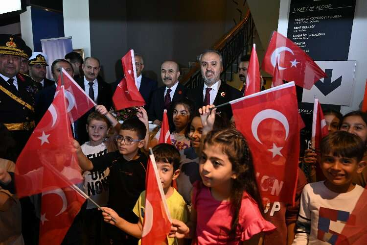 Bursa Valisi Mahmut Demirtaş’ın da katıldığı açılış töreninde konuşan Bursa Büyükşehir Belediye Başkanı Alinur Aktaş, Türk milletinin binlerce yıllık tarihinde birçok devletle tarih sahnesinde boy gösterdiğini söyledi. Millî mücadelenin, Türk milletinin var olma savaşı; Cumhuriyet’in ise yeniden dirilişin sembolü olduğunu dile getiren Başkan Aktaş, “Cumhuriyetimizin kuruluşunun üzerinden bir asır geçti. Ancak unutmayalım ki Türkiye Cumhuriyeti, binlerce yıllık devlet geleneğimizin son fidanı olarak doğmuş, kökleri derin ulu bir çınar olma yolunda büyümeye ve gelişmeye devam etmektedir. Gazi Mustafa Kemal Atatürk ve arkadaşları 29 Ekim 1923’te Türkiye Cumhuriyeti’ni kurarken hedefleri vardı: Ülkemizi muasır medeniyetler seviyesinin üzerine çıkarmak Ülkemizin bu hedefe ulaşmasının önüne zaman içinde birçok engel çıkarılsa da Türkiye, köklerine daha sıkı sarılarak, geleceğini inşa etmeye devam etmektedir. Bu vesileyle, millî mücadelemizin Başkomutanı Gazi Mustafa Kemal Atatürk başta olmak üzere bütün kahramanlarımızı rahmet ve minnetle anıyorum” dedi.