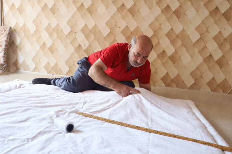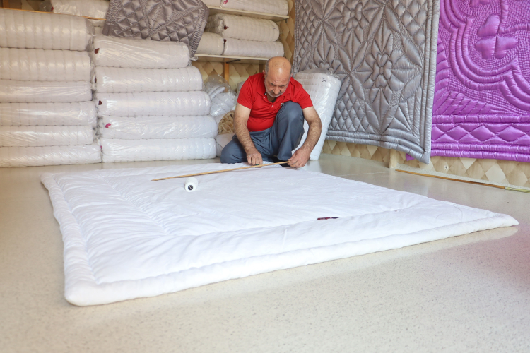 Yorgan ustası Şinasi Toprak, Babasından öğrendiği mesleği 40 yıldır devam ettirdiğini ifade ederek, "Bize genelde yünü ve bezini müşteri getiriyor, bizde burada sırıma işlemini yapıp teslim ediyoruz. Sipariş üzerine aldığımız yorganlarda ada biz yünü Uşaktan alıp yıkattırıyoruz daha sonra taratıp çırptırıyoruz. Tek kişilik bir yorganı 2 saatte çift kişilik bir yorganı da yaklaşık 3 saate sırıyabiliyoruz. İlk önce bezini dikiyoruz, daha sonra müşteri yünü torbaya basıp getirdiği için onu tekrardan bir elden geçirtmek gerekiyor, doldurmasını yapıp düzlüyoruz ve en son dikme işlemini bitene kadar yapıyoruz. Kışa hazırlık yazdan başlıyor. Genelde işlerimiz yazın daha yoğun oluyor. Yün yıkama, kurutuma, çırpma gibi işlemeleri kışın yapma gibi bir imkanları yok. O yüzden yazdan bu işlemler yapılıyor" diye konuştu.
