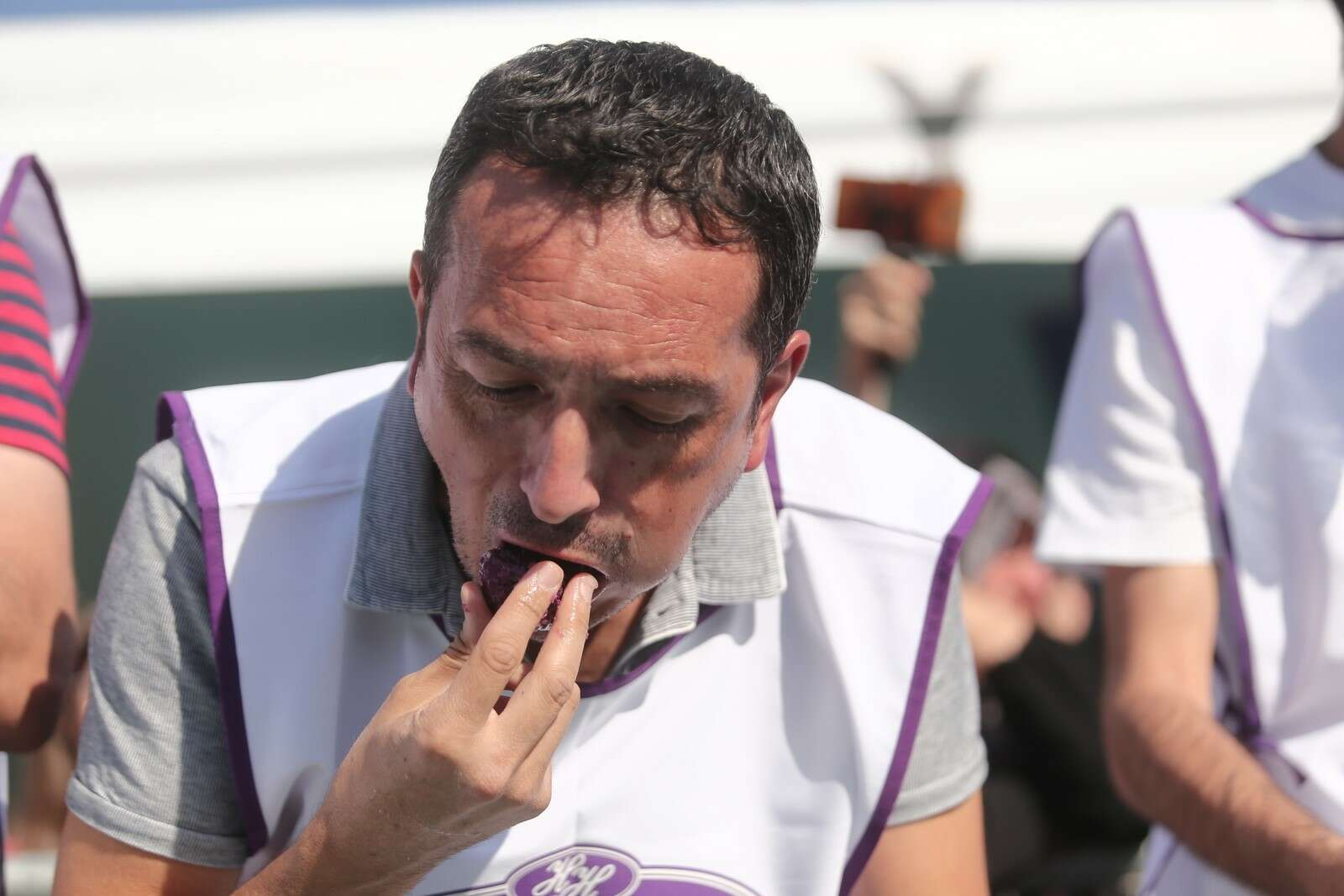Bursa’nın meşhur lezzetlerinden siyah incirle yapılan baklavalar etkinliğe katılan 17 yarışmacının önüne koyuldu. Oldukça çekişmeli geçen yarışmada dakikalar ilerledikçe yarışmacılar lokmalarını yutmakta zorlanırken, bol bol su tüketildi. Kimi yarışmacı erken pes ederken 6 dakikada 44 dilim baklava yiyen Mehmet Özbek birinci olarak tam altının sahibi oldu.