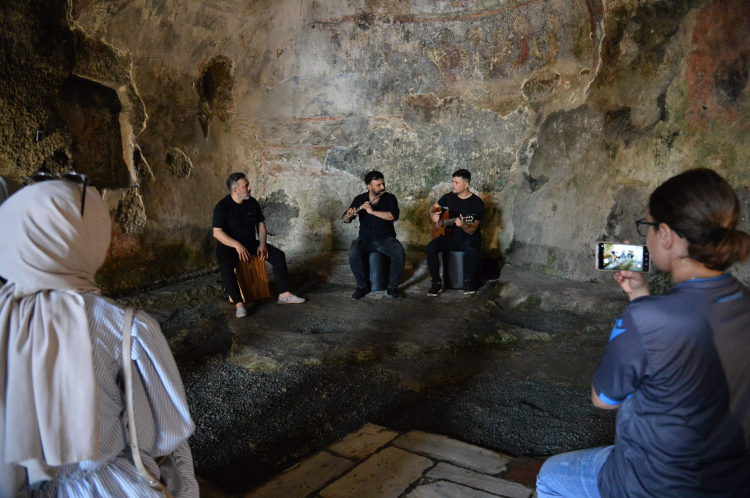 Yerli ve yabancı turistlerin yoğun ilgi gösterdiği Kızlar Manastırı'nda müzik dinletisi düzenleniyor.