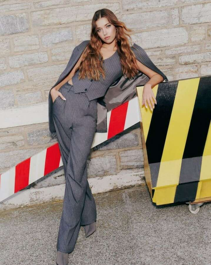 Reklam tanıtımı için ünlülerin de katıldığı lansmanda güzel oyuncu takım giydi.