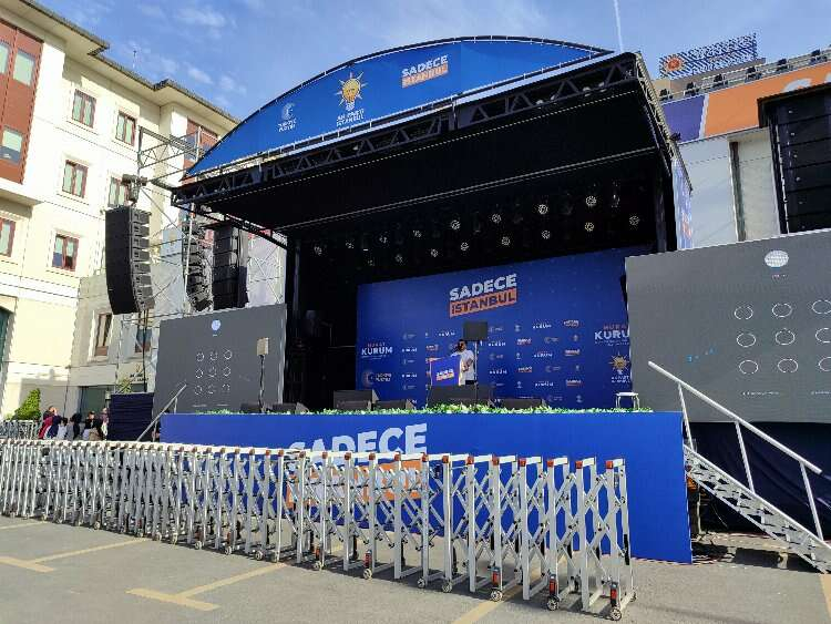 İstanbul'da seçimin son bulmasına az bir süre kalırken, Sütlüce'de bulunan AK Parti İstanbul İl Başkanlığı önüne sahne kuruldu.