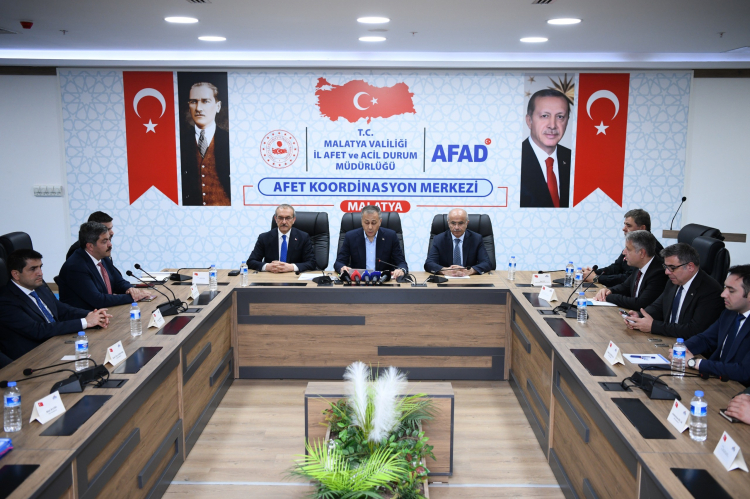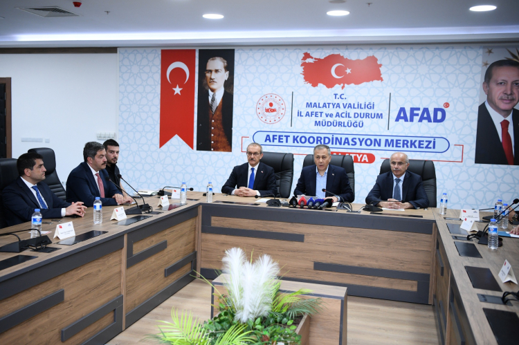 İçişleri Bakanı Ali Yerlikaya, depremin meydana geldiği Malatya'da AFAD Koordinasyon Merkezinde toplantıya katıldı.