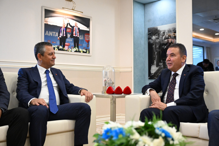 Antalya Büyükşehir Belediyesini ziyaret eden CHP Genel Başkanı Özgür Özel, başarılı çalışmalarından dolayı Başkan Muhittin Böcek’i kutlayarak, “Üst üste ikinci kez seçilmeyi başararak bir kısır döngüyü kırdınız.