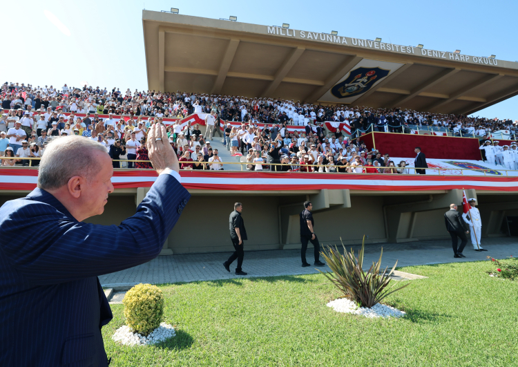 Cumhurbaşkanı Recep Tayyip Erdoğan, Milli Savunma Üniversitesi Deniz Harp Okulu Diploma Alma ve Sancak Devir Teslim Töreni'ne katıldı.