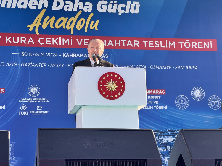 Konuşmaların ardından Erdoğan Kahramanmaraş’ta 3 bin 499 konutun anahtarlarını kura ile hak sahiplerine teslim etti.