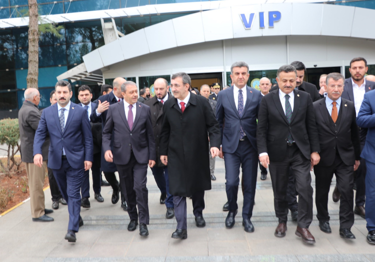 Cumhurbaşkanı Yardımcısı Cevdet Yılmaz, Tarım ve Orman Bakanı İbrahim Yumaklı, Sanayi ve Teknoloji Bakanı Mehmet Fatih Kacır, Enerji ve Tabii Kaynaklar Bakanı Alparslan Bayraktar, Çalışma ve Sosyal Güvenlik Bakanı Vedat Işıkhan, Ticaret Bakanı Ömer Bolat, Hazine ve Maliye Bakanı Mehmet Şimşek ile birlikte Şanlıurfa'da Sanayi ve Teknoloji Bakanlığı ev sahipliğinde düzenlenen GAP Eylem Planı Bilgilendirme ve İstişare Toplantısı'na katıldı.