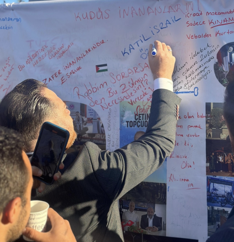 Nöbetteki gençlere destek olmak için giden Yeniden Refah Partisi Gençlik Kolları Genel Başkanı Melih Güner ve ekibide nöbet tutan Filistin gönüllülerine destek oldu.