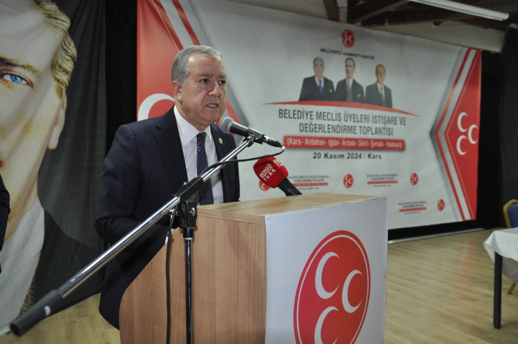 MHP Yerel Yönetimlerden Sorumlu Genel Başkan Yardımcısı ve Ankara Milletvekili Sadir Durmaz, MHP Kars İl Başkanlığının ev sahipliğinde Aynalı Köşk'te düzenlenen Belediye Meclis Üyeleri İstişare ve Değerlendirme Toplantısı’nda konuştu. MHP Genel Başkanı Devlet Bahçeli’nin çağrısının bir çözülmeye ve ayrışmaya değil, bin yıllık kardeşliği yaşatmaya yönelik tarihi bir çağrı olduğunu söyleyen Durmaz, “Tarihe yön veren bu çağrı, yeni yüzyılda terörün bitmesi, huzurun gelmesi için yapılmıştır. Genel Başkanımız Devlet Bahçeli, ‘PKK Kürtleri temsil edemez’, ‘Dün terörist başının yoldaşı olanlar, şimdi Amerika’nın uşağı olmuşlar’, ‘Joe Biden’in üvey evlatlarına Türk milletinin asil evlatlarını kurban edemeyiz’ ifadeleriyle adeta terörün ve terör örgütlerinin arkasındaki emperyalist şebekenin maskesini düşürmüştür. Terör örgütünün silahlarını bırakıp Türkiye Cumhuriyeti Devleti'ne teslim olmaktan başka bir çare kalmamıştır” dedi.
