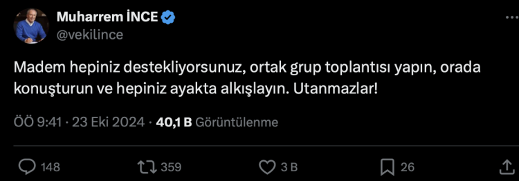 İnce sosyal medya hesabından yayınladığı mesajda şu ifadelere yer verdi:
