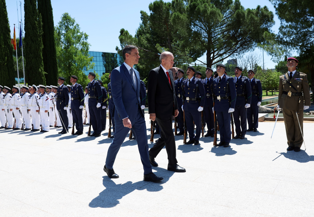 İstiklal Marşı ve İspanya milli marşının çalındığı törende Cumhurbaşkanı Erdoğan, karşılama kıtasını selamladı.