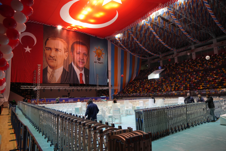 Cumhurbaşkanı Recep Tayyip Erdoğan'ı ağırlayacak olan Samsun’da il kongresinin yapılacağı salonda son rötuşlar yapılıyor.