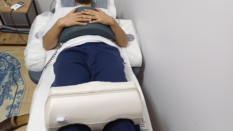 Nöral terapi ile vücudun kendini iyileştirme sürecini sinir sistemi üzerinden düzenlemeye yönelik bir tedavi yöntemi kullanıyor. Sinir tedavisi uygulayan cihaz vücuttaki gereksiz hücre dışı sıvıları, varis problemlerini azaltıp daha dinç ve kaliteli bir yaşam öne sürüyor. FMS cihazıyla birçok probleme olumlu sonuç alınabildiğini belirten Diyetisyen Deniz Türkaslan, "Cihazımızda kullandığımız bir diğer program ise, ödem atmak üzerine olmakta olup vücudun rahatlamasını sağlıyor, gereksiz hücre dışı sıvılardan kurtuluyoruz, vücudu rahatlatıyoruz. Masaj etkisi alarak, vücudun dinlenmesini ve daha dinç uyanmayı sağlıyoruz. Nöral terapi uyguladığımız cihazda birçok fayda aldığımız programlar mevcut. Bunlardan en çok kullandığımız varis problemleri, dolaşım problemleri, sinir sistemi üzerinden yaptığımız uygulama ve buna bağlı problemler, bel ve boyun fıtığı ağrılarını azaltmak için kullanıyoruz. Daha dinç bir yaşam, daha kaliteli bir hayat sürmeyi planlıyoruz" ifadelerini kullandı.