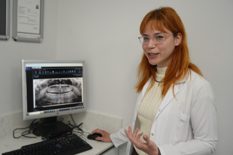 KOSTÜ Diş Hekimliği Fakültesi'nde Ağız, Diş, Çene Radyolojisi Ana Bilim Dalı'nda görevli Dr. Öğretim Üyesi Melisa Öçbe, "Craniocatch" isimli yapay zeka programının detaylarını anlattı. Bu programı yaklaşık bir aydır kullandıklarına dikkat çeken Öçbe, "100'den fazla hastayı yapay zeka ile muayene ettik. Hasta ilk muayeneye geldiğinde, rutin görüntüleme yöntemi olan 2 boyutlu panoramik röntgen çekiliyor. Craniocatch, bu panoramik radyografiyi analiz ederek hem anatomik noktaları belirliyor hem de çürük, periodontal hastalıklar gibi mevcut rahatsızlıkların tanısını koyuyor. Bununla da kalmayıp hasta için bu mevcut hastalıkların tedavi planını oluşturuyor. 'Bu diş çürük, buna dolgu yapılması lazım, kemik kaybı var, diş boşluğu var, implant yapılması gerekiyor' gibi bize detaylı tedavi yöntemi sunuyor" dedi.