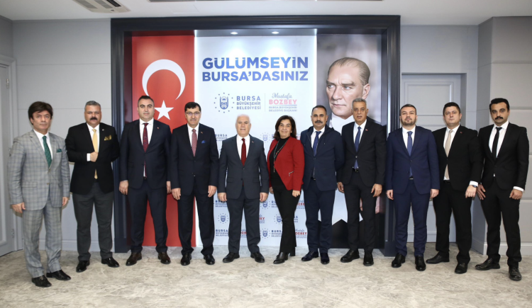 Bursa Büyükşehir Belediye Başkanı Mustafa Bozbey, Kütahya'da uzun yıllar sonra ilk kez seçim kazanan Cumhuriyet Halk Partili Belediye Başkanı Eyüp Kahveci ve heyetini ağırladı.