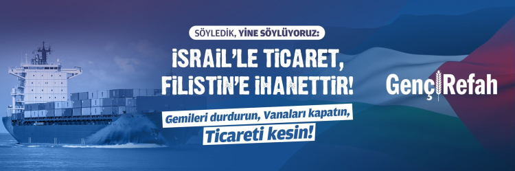 Bu paylaşımdan sonra İsrail’e sevkiyat yapıldığı için protesto yapılan limanlarda tüm Gençlik Kolları Teşkilatları olarak eylem yapma kararı alan Genç Refah yetkilileri aynı zamanda Türkiye’nin her iline İsrail’le ticaretin kesilmesine yönelik uyarılarda bulunan afişlerden asılacağını belirtti.