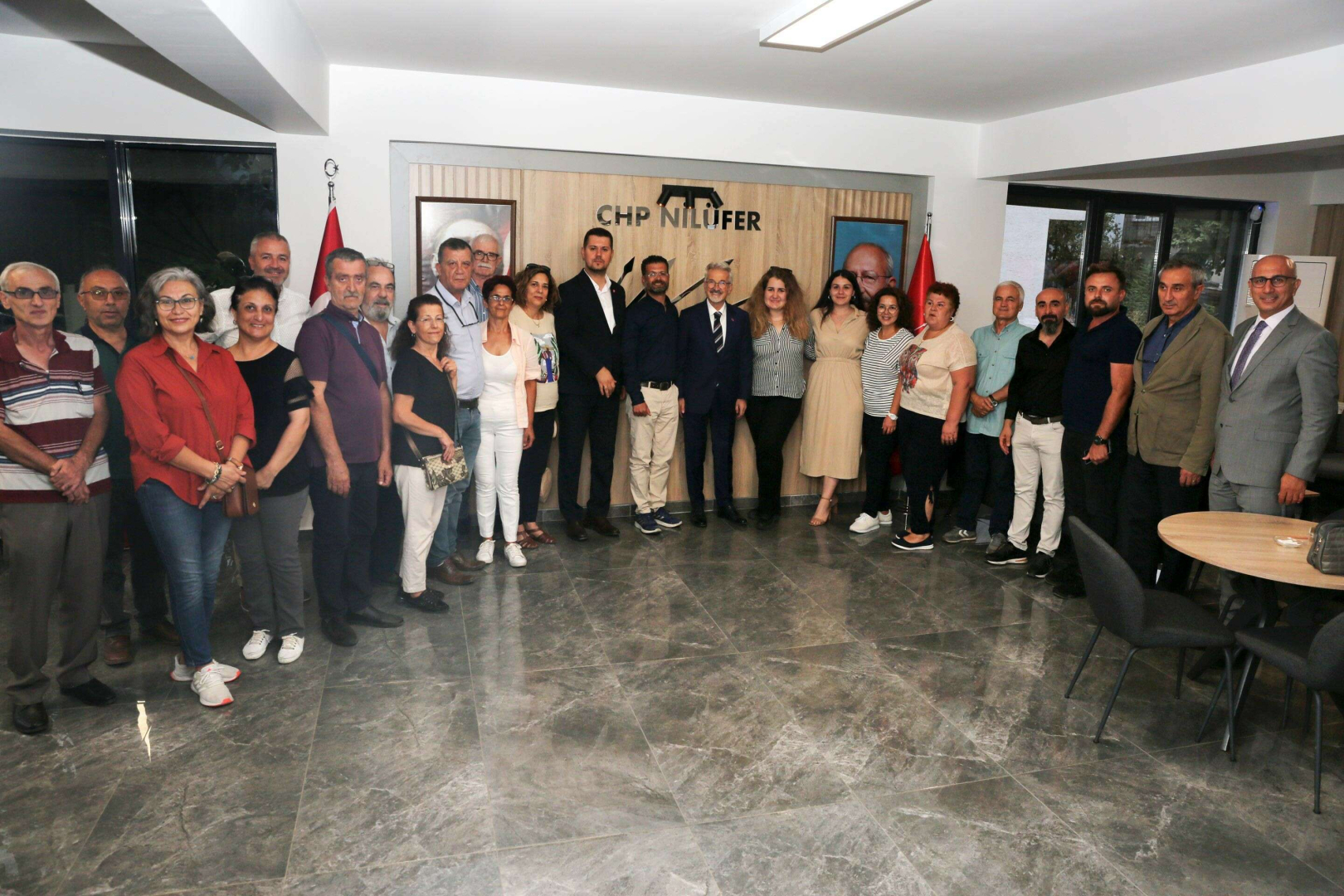Nilüfer Belediye Başkanı Turgay Erdem, Cumhuriyet Halk Partisi’nin (CHP) gerçekleştirdiği son ilçe kongrelerinde göreve seçilen CHP Osmangazi İlçe Başkanı Cengiz Çelikten ve CHP Nilüfer İlçe Başkanı Özgür Şahin ile bir araya geldi.