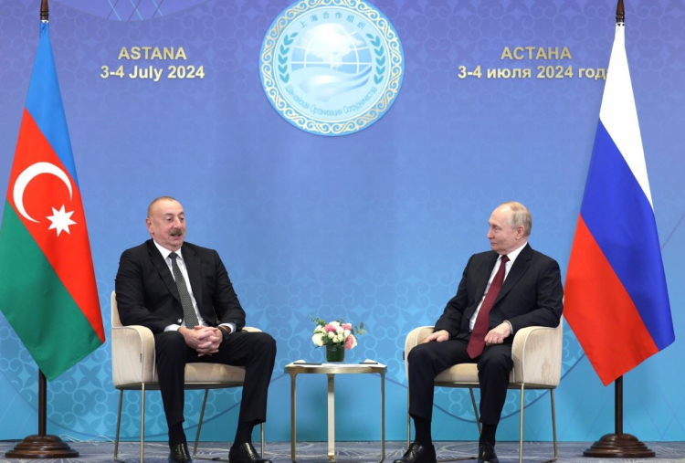 Rusya Devlet Başkanı Vladimir Putin ve Azerbaycan Cumhurbaşkanı İlham Aliyev, Astana Şanghay İşbirliği Örgütü (ŞİÖ) 24'üncü Devlet Başkanları Zirvesi'ne katılmak üzere geldikleri Astana'da görüştü.