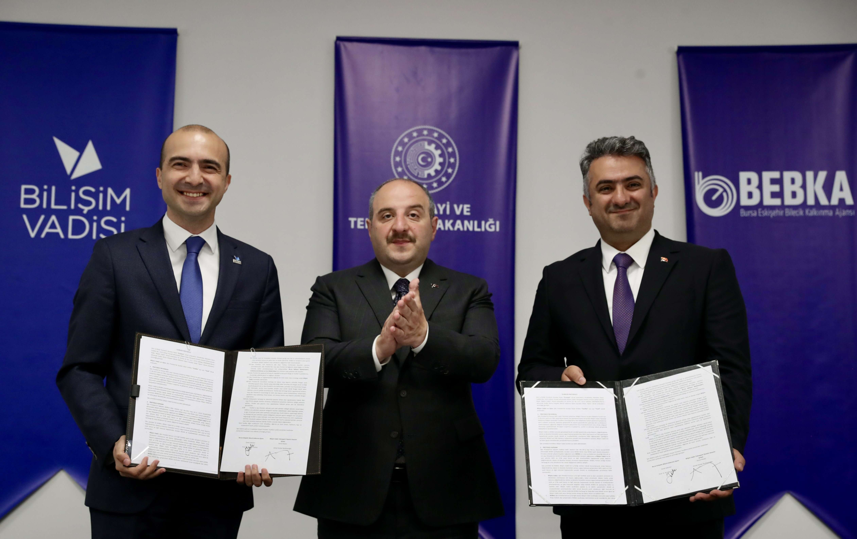 Bilişim Vadisi Genel Müdürü Ahmet Serdar İbrahimcioğlu ile BEBKA Genel Sekreteri Muhammed Zeki Durak protokole imza attı.
