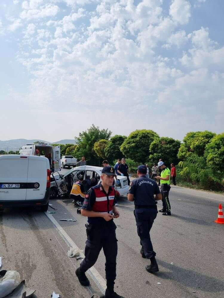 Bursa’nın Yenişehir ilçesinde seyir halindeki hafif ticari araç otomobile çarptı. Kaza sonucu otomobilde bulunan 2 kişi olay yerinde hayatını kaybederken, hafif ticari aracın sürücüsü ise yaralandı.