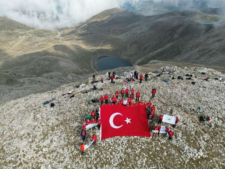 Buradan hareket ederek toplamda 4 saatlik yolculuğun ardından 2 bin 543 rakımlı büyük zirveye ulaştı. Dağcılar ulaştıkları büyük zirvede Türk Bayrağı açıp, İstiklal Marşı’nı okuyarak Cumhuriyetin 100’üncü yılını kutladı.