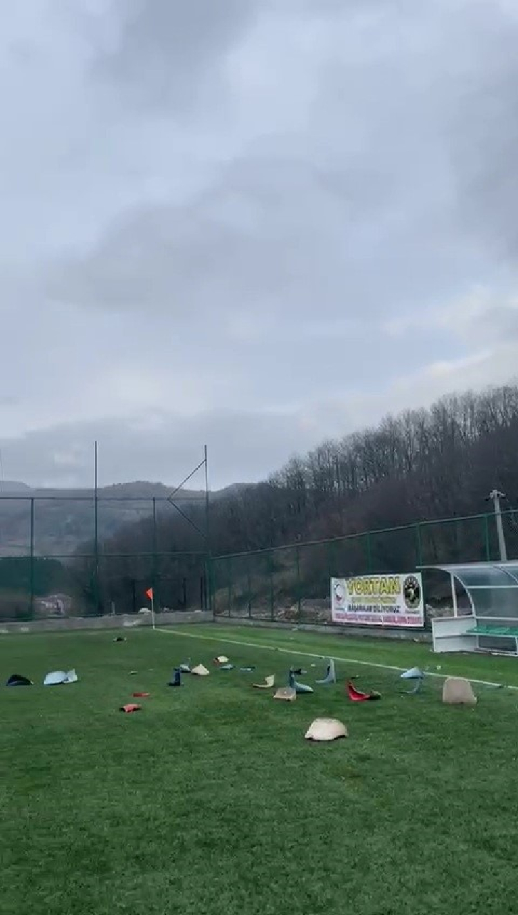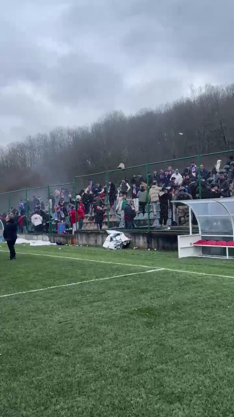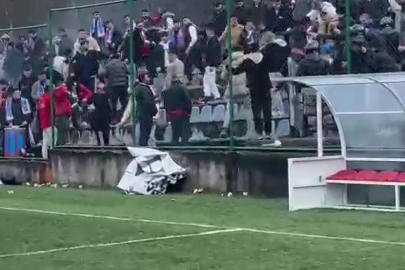 Karabük Amatör Lig'de oynanan Yortanspor - Eskipazar Belediyespor maçında deplasman takım taraftarları kırdıkları koltukları sahaya fırlattı.