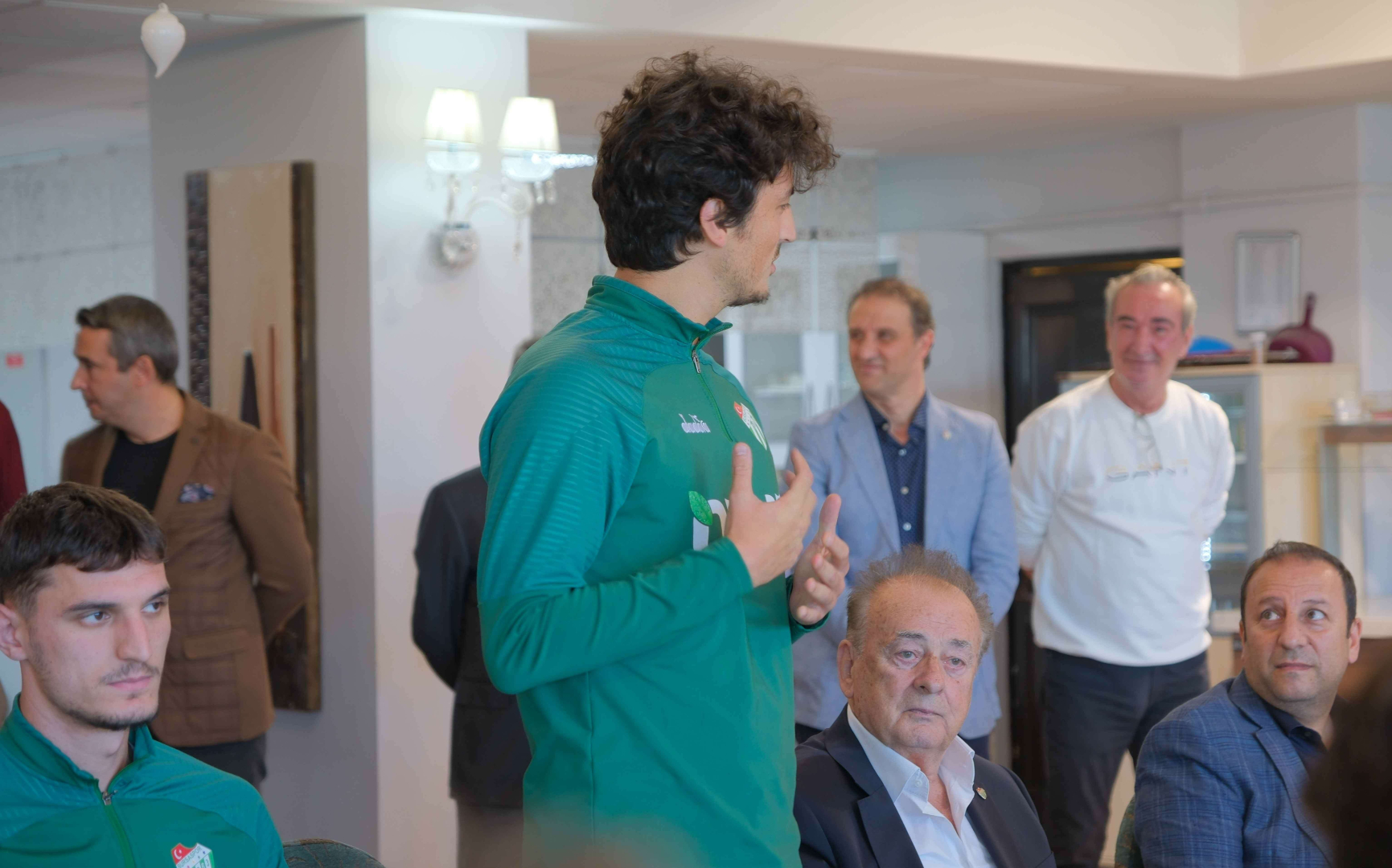 Burada tamamınız Bursaspor’da büyüdünüz. Biz Vakıfköy Tesislerini kurarken arzu ettiğimiz buydu. İlk biz başlattık, diğer kulüplerin hiçbirinde yoktu. Ben o zamanlar genel kaptandım, başkanımız Süleyman Kurtçu ağabeyimiz başkanıydı. Netice gelir ama birbirinizi seveceksiniz, birbirinize inanacaksınız. Biz üzerimize düşeni yapacağız. Bakın, Voleybolda kızlarımız dünyayı devirdi. Siz neden yapamayasınız? Siz de başaracaksınız. Moralinizi bozmayın” ifadelerini kullandı.