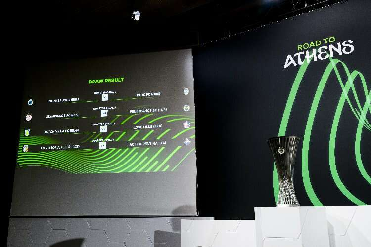 Avrupa’nın kulüp düzeyindeki üç numaralı organizasyonu UEFA Avrupa Konferans Ligi'nde çeyrek final ve yarı final eşleşmeleri belirlendi. İsviçre’nin Nyon kentindeki UEFA Genel Merkezi’nde yapılan kura çekiminde, son 16 turunda rakiplerini eleyen Fenerbahçe, Aston Villa, Club Brugge, Fiorentina, Lille, PAOK, Viktoria Plzen ve Olympiakos takımları yer aldı. Kura çekimini, kariyerinde AEK ve Sevilla formaları da giyen eski Yunan futbolcu Vasilios Tsiartas gerçekleştirdi.