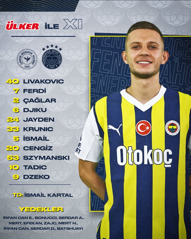 Fenerbahçe Rize deplasmanında sahaya çıkacağı ilk 11