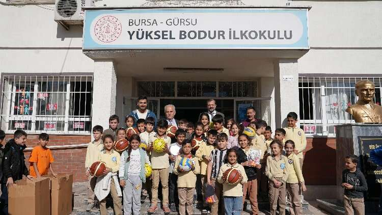 Gürsu Belediye Başkanı Mustafa Işık, yeni yetenekleri desteklemek için okul okul gezerek spor malzemeleri dağıtıyor.