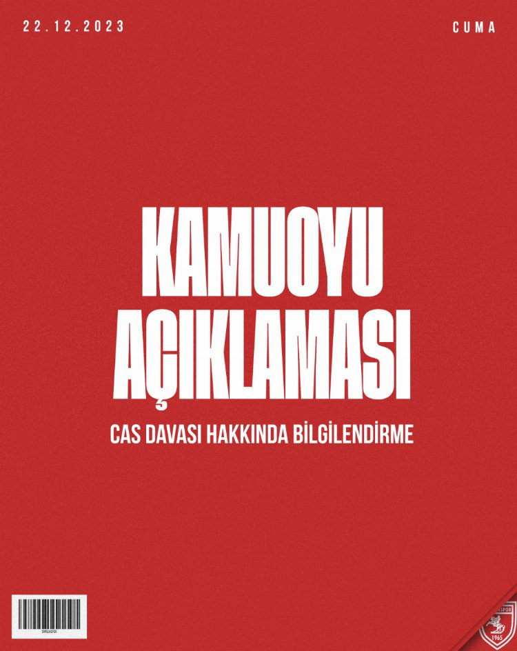 Samsunspor tarafında, CAS Davası Hakkında Bilgilendirme niteliğinde Kamuoyu Açıklaması yapıldı.