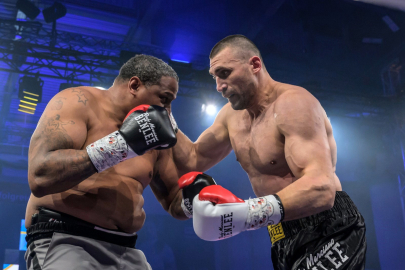 Türk boks kulübü EC BOXING'in ağır sıkletteki Ukraynalı boksörü Viktor Faust, ABD'li Rydell Booker'ı yendi.