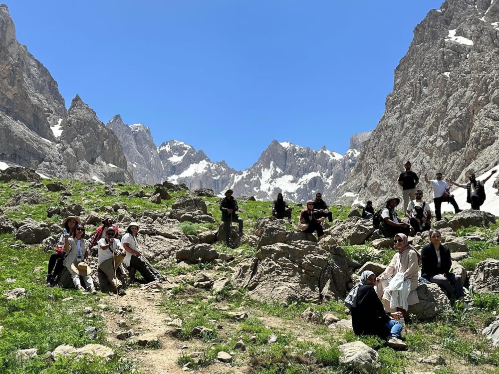 Kente gelen 40 kişilik doğasever, Cilo Dağları'nın eteklerindeki Cennet ve Cehennem Vadisi'nde yürüyüş yaparak günün keyfini çıkardı.