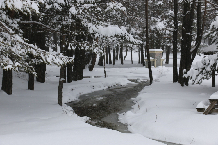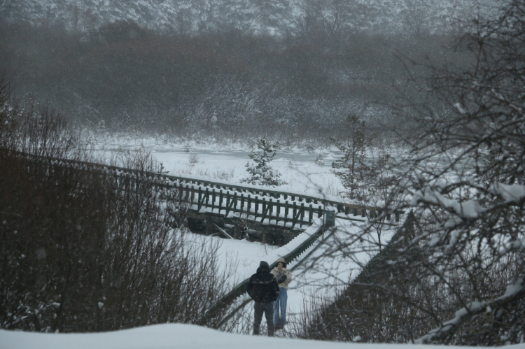 Milli parkta kar kalınlığı yer yer 20 santimetreye ulaşırken, göl çevresindeki çam ormanları ve yürüyüş yolları beyaz örtüyle kaplandı.