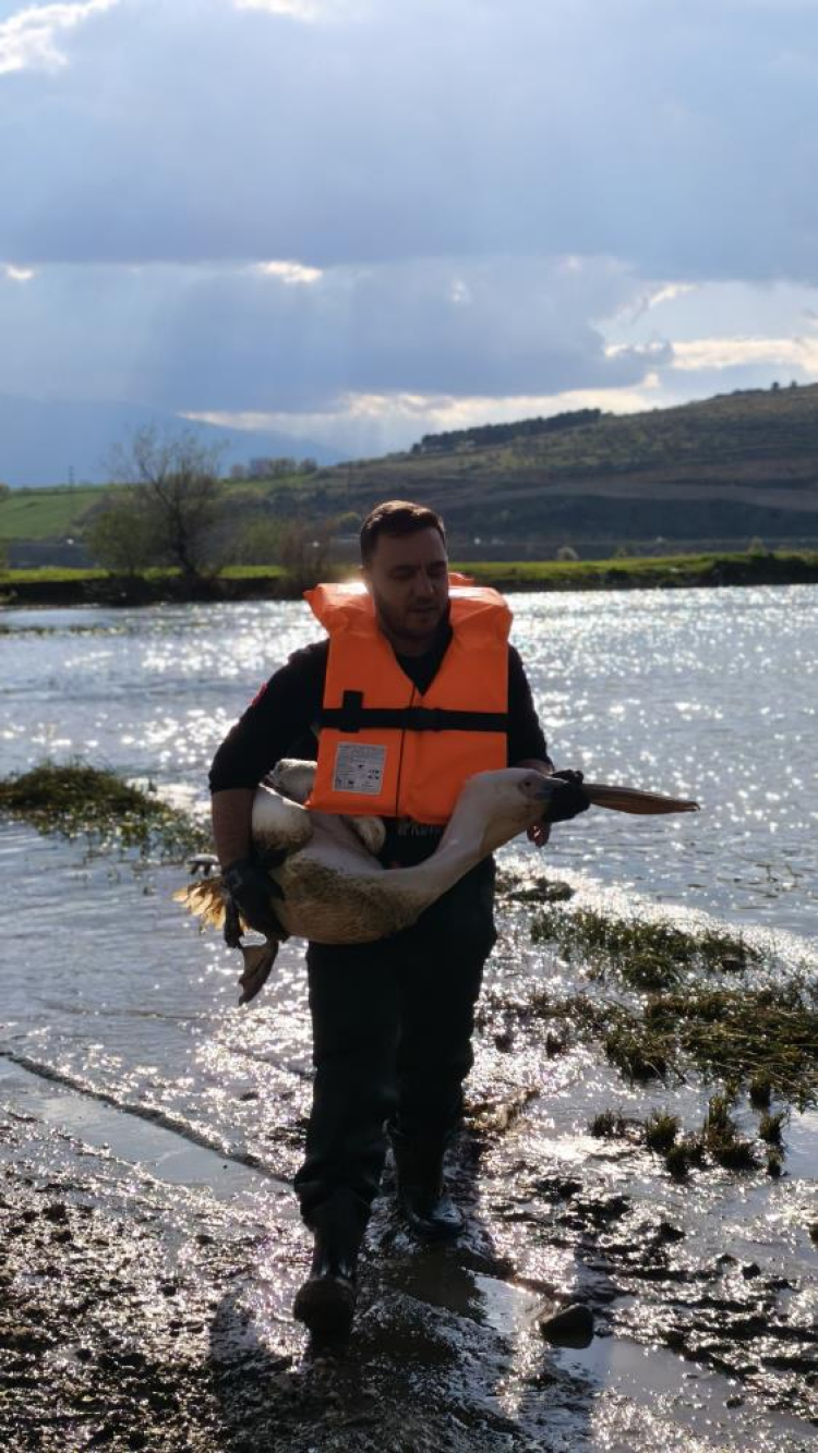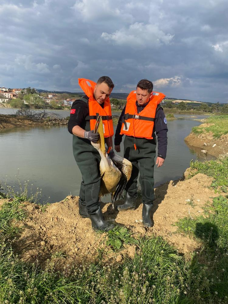 Zorlu şartlarda gerçekleştirilen çalışmada, çalılıklar arasında sıkıştığı belirlenen yaralı pelikan bulunduğu yerden dikkatli bir şekilde çıkarıldı. Kurtarılan pelikan, tedavi altına alınmak üzere İnegöl Belediyesi Sahipsiz Hayvan Bakım ve Tedavi Merkezi'ne götürüldü.