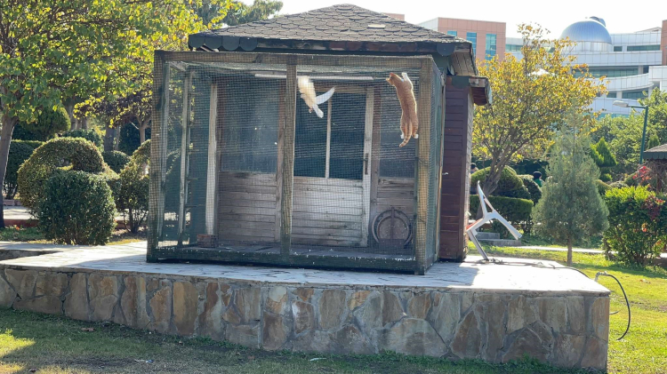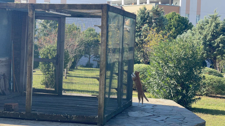 Osmaniye Korkut Ata Üniversitesi bahçesinde bulunan güvercin kafesindeki güvercini yakalamak isteyen kedi tel örgülere aldırış etmeden dakikalarca güvercini yakalamak için mücadele etti. Kafese yakın alanda bulunan kamelyada sınava çalışan öğrenciler kedinin bu mücadelesini fark edince cep telefonu ile kayıt yapmaya başladı. Kedinin bitmek bilmeyen azmi ve keyifli mücadelesi karşısında sınav stresini üzerlerinden atarak keyifli anlar yaşayan öğrenciler, "Bu azim bizde olsa sınavları hiçbir şekilde dert etmezdik" dedi.