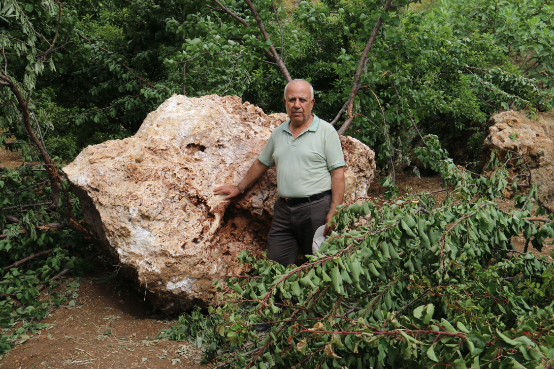 Hatay’da taş ocağından bahçesine 10 tonluk devasa kaya düşen Selahattin Altınöz, ailesinin kayısı topladığı esnada gerçekleşen olaya tepki göstererek çalışmaların duyarlı bir şekilde gerçekleştirilmesini talep etti.