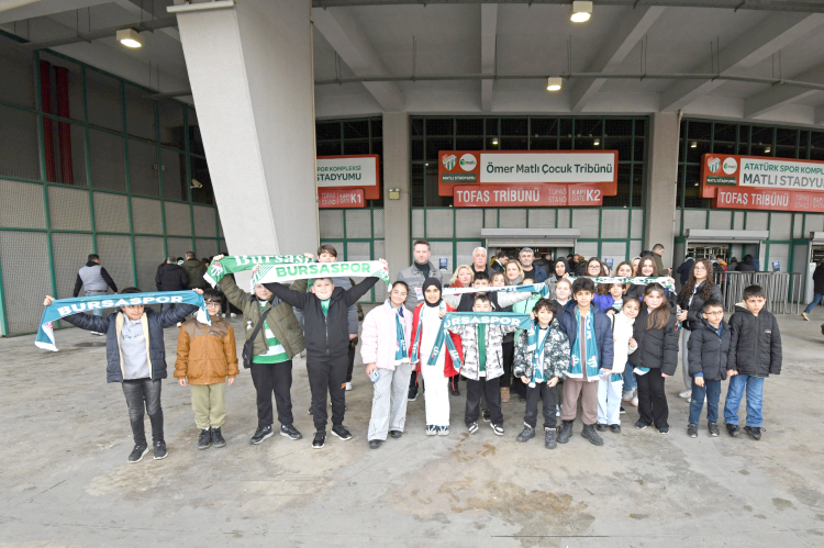 Müze ziyaretinin ardından çocuklar, Bursaspor’un Yeni Mersin İdman Yurdu ile karşı karşıya geldiği mücadeleyi izlemek üzere stadyuma götürüldü. Çocuk Tribünü’nde yer alan grup, maç boyunca tezahüratlarla takımlarına destek verdi.