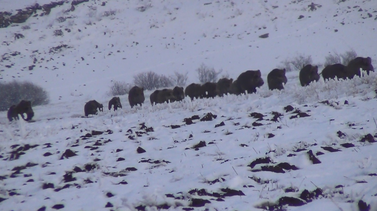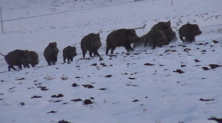 Karlı arazide yaklaşık 2 kilometre yürüyerek domuz sürüsüne yaklaşan gazeteciler, onlarca domuzu görüntüledi. Bir anda gazetecilerin üzerine doğru koşmaya başlayan domuz sürüsü daha sonra yön değiştirerek ters istikamete doğru koşmaya başladı. Sürü daha sonra gözlerden kayboldu.