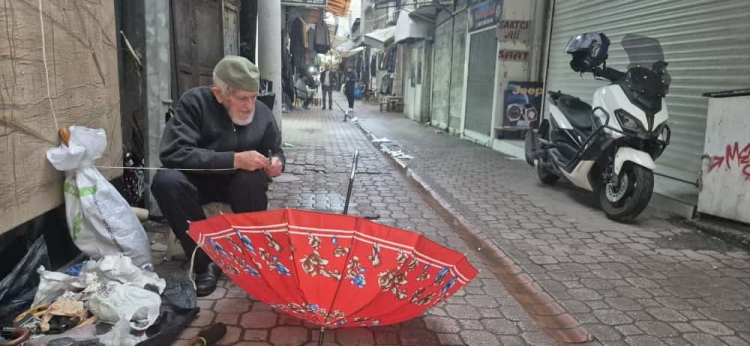 Kendi kendine öğrendiği şemsiye tamirciliğini ilerlemiş yaşına rağmen ilk günkü hevesle sürdüren 96 yaşındaki Dursun Yıldız, hayat tecrübelerini ve gençlere vasiyetini anlattı. Terzilikle başladığı meslek hayatına daha sonra şemsiye tamirciliğiyle devam ettiğini belirten yaşlı adam, "Yaş ilerledikçe zorlanıyorum ama yapıyorum. Gidip evde otursam bu işi kimse yapmaz. En zor şey kula muhtaç olmaktır" diye konuştu.