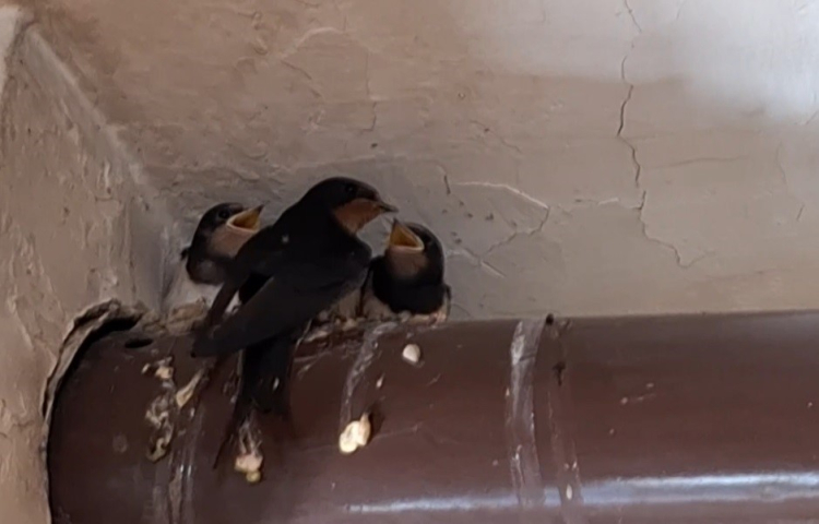 Erzincan’da kahvehaneyi yuva yapan 3 yavru ve anne, baba kırlangıç ailesi yürekleri ısıttı.