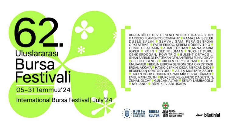 Şimdi festivalin geri kalan programına bakalım. Çok iyi sanatçılar ve konserler var bundan sonra da…İBB Kent Orkestrası ile “Unutulmaz Aranjmanlar”, Bekir Ünlüatar ile “Zeki Müren şarkıları”, Berlin Euro Senfoni Orkestrası, Ceza-Mercan Dede ve Hayko Cepkin, Köfn, Şair şarkıları konserleri de 62.Bursa Festivali’ne renk katacak bundan sonraki günlerde…